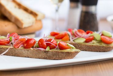 Μαύρο ψωμί με σπρέντ από αβοκάντο και ταχίνι ολικής αλέσεως, ντοματίνια & αγγούρι