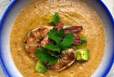 Gazpacho με αβοκάντο και γαρίδες