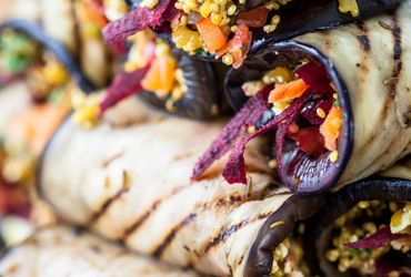 Ρολά μελιτζάνας με γέμιση τυριού & κινόα