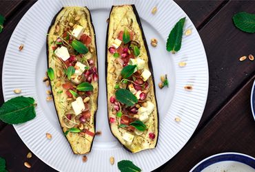 Μελιτζάνες γεμιστές με φέτα και ρόδι