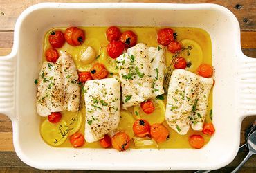 Μπακαλιάρος στο φούρνο με μυρωδικά