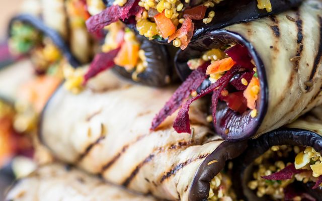 Ρολά μελιτζάνας με γέμιση τυριού & κινόα