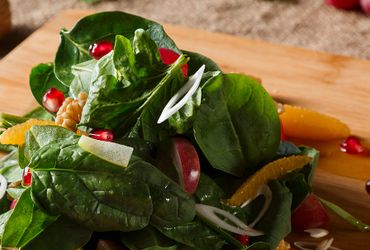 Σαλάτα σπανάκι με ρόδι, πορτοκάλι & σταφύλι