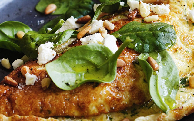 Ομελέτα με πράσο, σπανάκι & φέτα