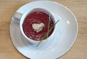 Σούπα παντζαριού με παγακάκι γιαουρτιού