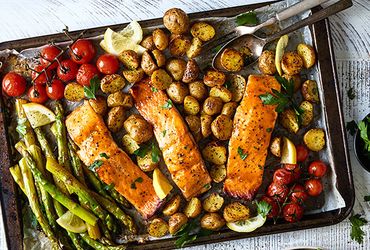 Ψητός Σολομός με Πατάτες και Λαχανικά