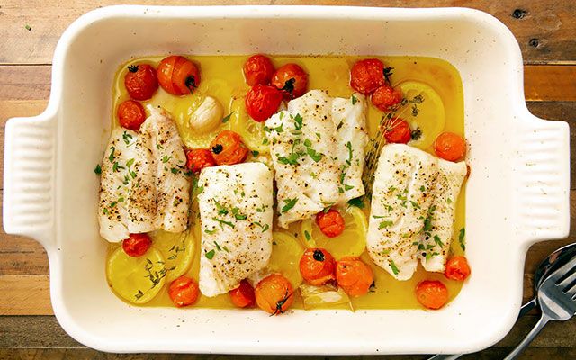 Μπακαλιάρος στο φούρνο με μυρωδικά